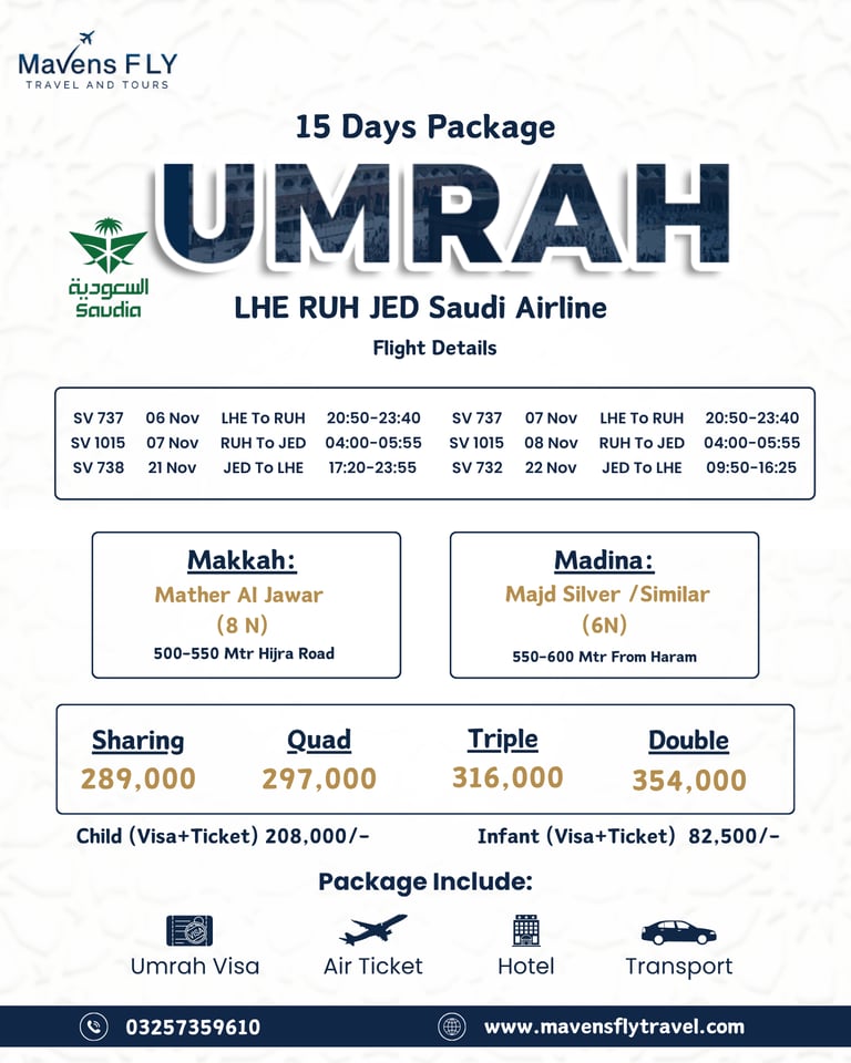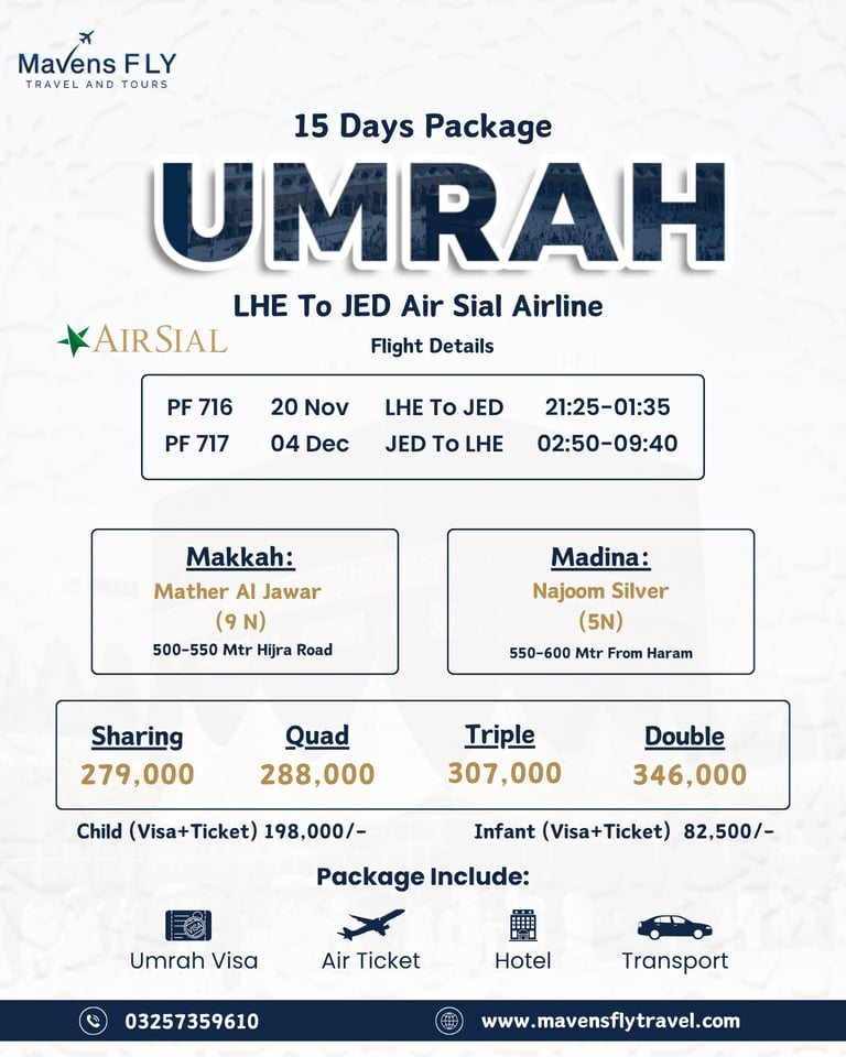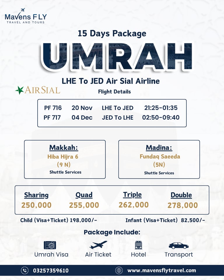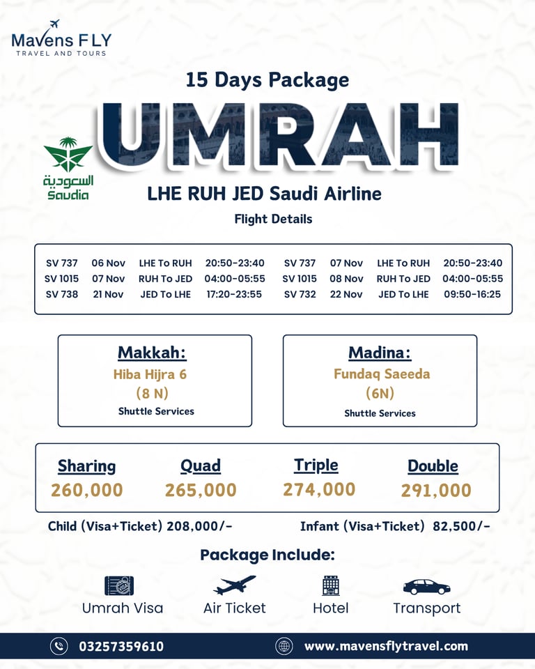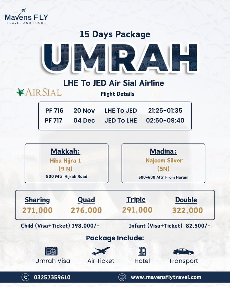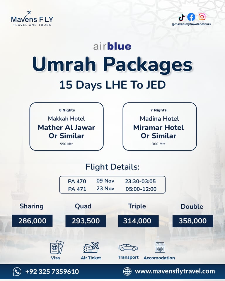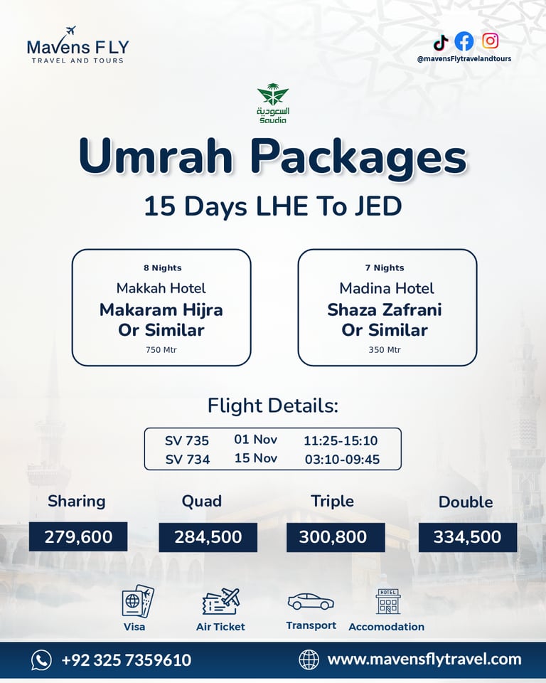 We specialize in Umrah & Hajj packages, international tours (like Dubai, Turkey, Malaysia, etc.), visa services, and flight bookings — all tailored to your comfort and needs.